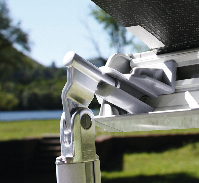 Die Markise für Wohnmobile, Caravans und Campingbusse mit 2 Kederschienen und extrastarkem, leichtem Alu-Gehäuse mit Alu-Endkappen. Maximale Schattenfläche, Tuch mit diffuser Lichtverteilung. Beidseitig bedrucktes Vinyltuch mit Anti-Scratch-Coat als Schutzfilm. Reguliersystem zur Schließung der Frontblende. Selbstblockierender Auto-Lock-Sicherheitsmechanismus. Stützfüße in der Frontblende integriert. Spezielle Montageadapter für verschiedene Fahrzeuge erhältlich. Motor in 12 V ist optional nachrüstbar.
