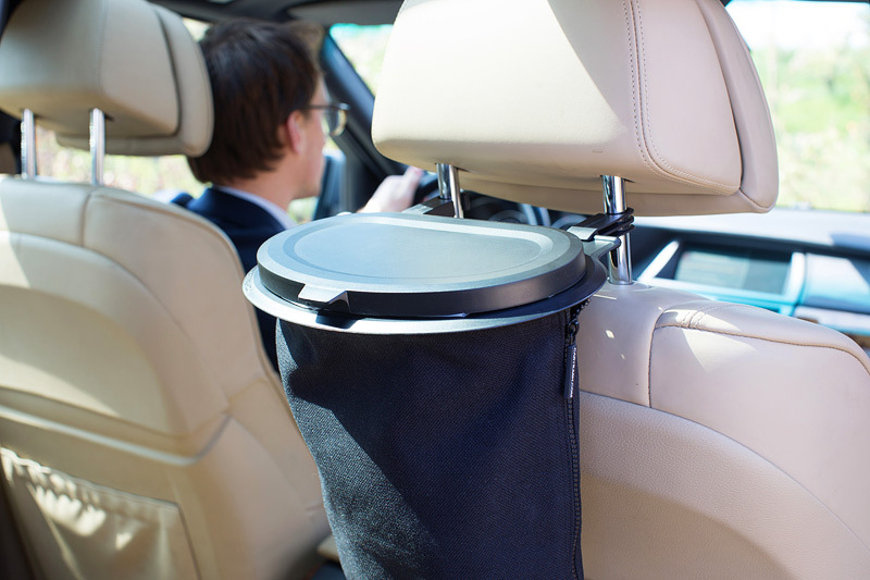 Praktischer Mülleimer für zu Hause oder unterwegs, mit vielen Befestigungsmöglichkeiten.