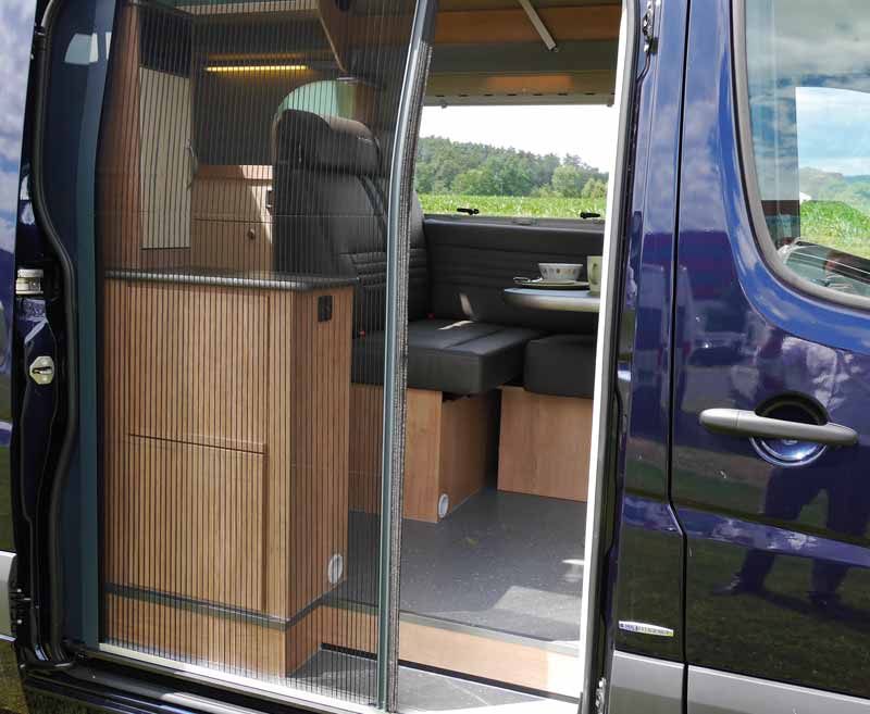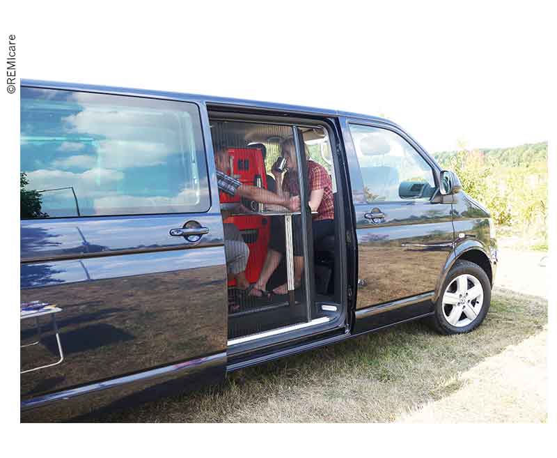 REMIcare Fliegenschutztür 1960 x 1360 mm, für Mercedes Sprinter und baugleiche Fahrzeuge. Die Fliegenschutztür hat einen umlaufenden Rahmen mit perfektem Verschluss. Ein wohnliches Wabendekor sorgt für Urlaubsstimmung. Eine gute Durchsicht und Luftzirkulation bleibt gewährleistet. Sie sind auch vor kleinsten Plagegeistern geschützt, Stechfliegen bleiben draußen.