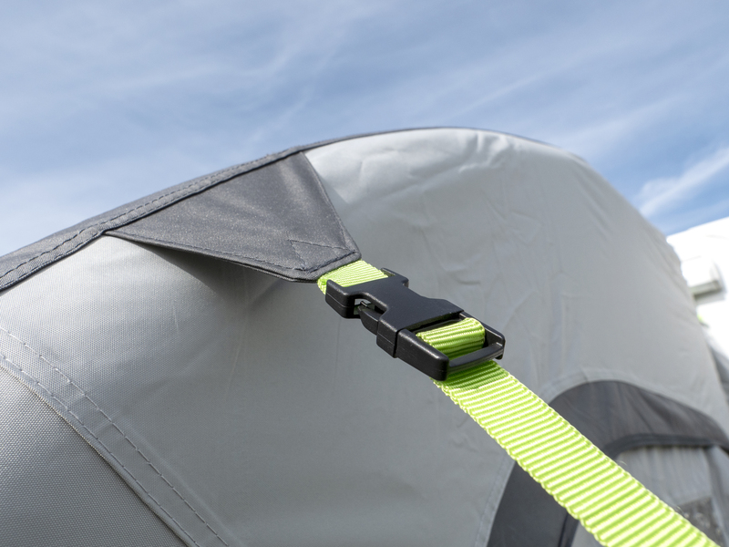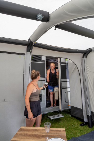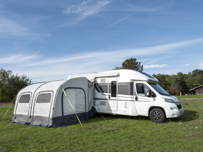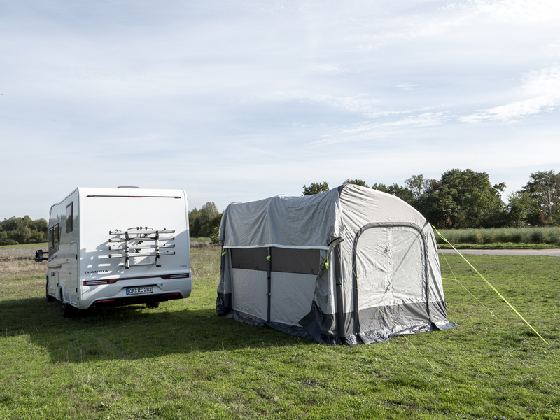 Bleiben Sie mobil! Das freistehende Reisemobil-Luftvorzelt TOUR PONZA AIR 390 ermöglicht es Ihnen, mit dem Fahrzeug wegzufahren und das Vorzelt stehen zu lassen.