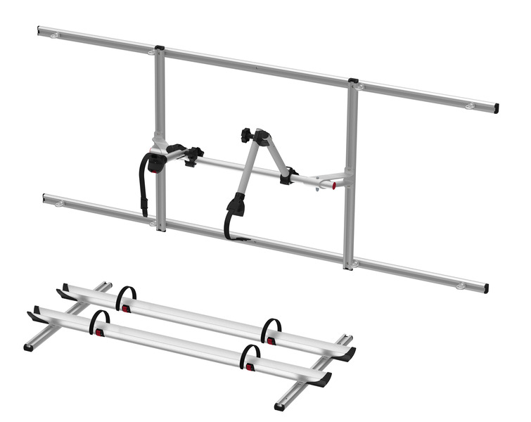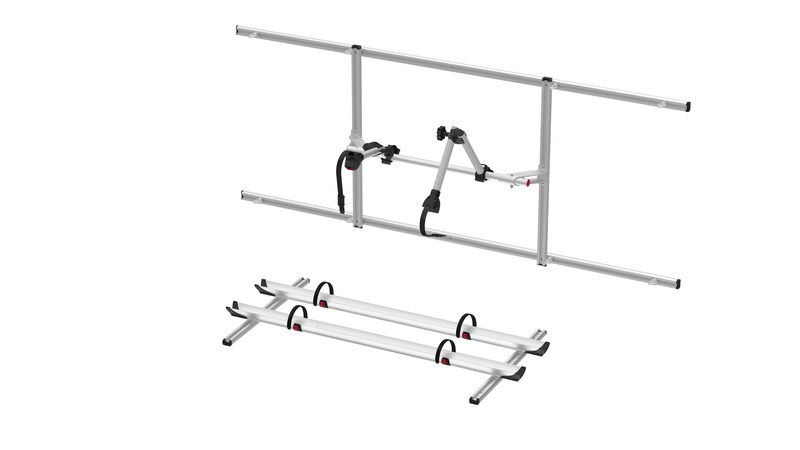 Komplettes Mehrzweckkit aus Strukturen zur Befestigung der Fahrräder und verschiedenem Zubehör der Linie Organizer.