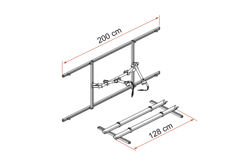 Ladegutsicherung mit 2 Alu-Leisten 198 cm lang. Zur Befestigung an der Heckgaragenwand, mit 8 Ringen zum Verzurren von Ladegut.