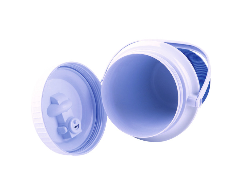 Getränkekühlebehälter mit Ausgießer und Henkel oben.