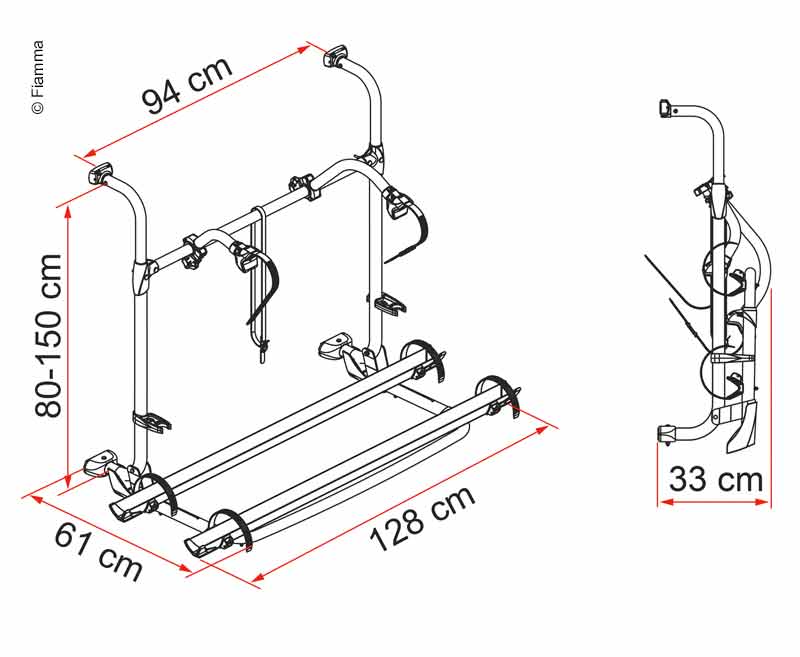 Fahrradträger Pro für die Montage an den Wohnmobilen von Autotrail ab Baujahr 2011. Die Besonderheit ist, dass diese Fahrzeuge hinten das Ersatzrad haben.
