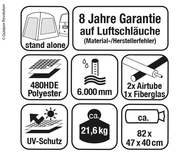 Das bewährte Movelite 1 mit optimierter Austattung wie tieferer Schleuse mit Moskitonetztür, Sonnendach über dem Eingang. Sowohl die Dachbelüftung auf der rechten und linken Seite, als auch beide Seitentüren, sind mit Mesh-Panels für eine bessere Lüftung versehen. Die Nähte sind versiegelt.