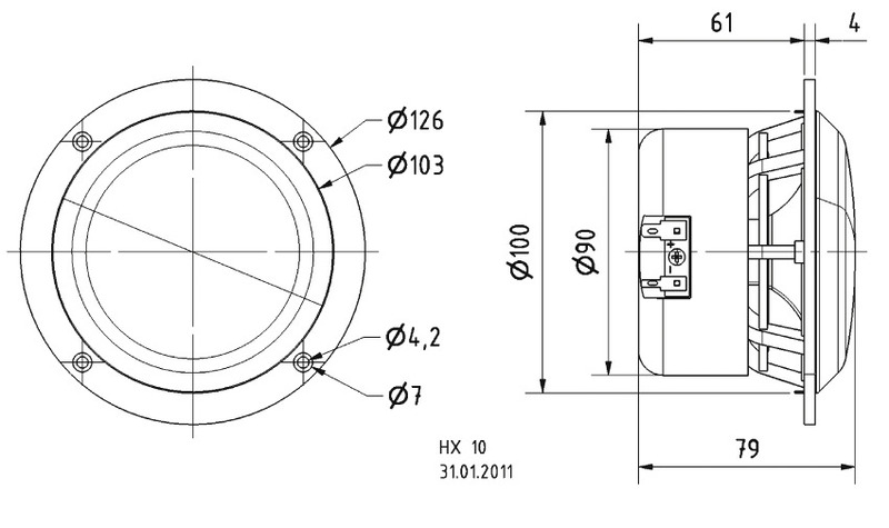 Die wichtigsten Kenndaten des HX 10: Äußerst leichte und stabile Aluminiummembran; hochwertiger Hochtöner; integriertes Gitter; Neodymantrieb; platzsparend auf der Rückseite unter einer Kunststoffkappe angebrachte Frequenzweiche; Anschluss per Flachstecker 4,8 x 0,8mm(+)/2,8 x 0,8mm(-); 25mm Schwingspule für hohe Belastbarkeit; 4 Ohm