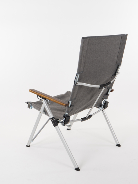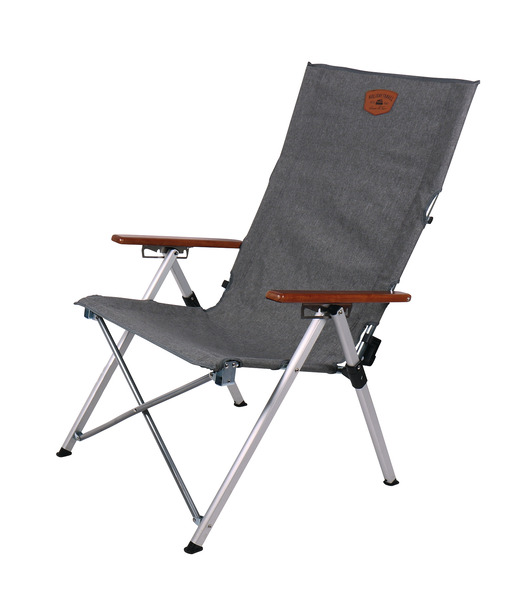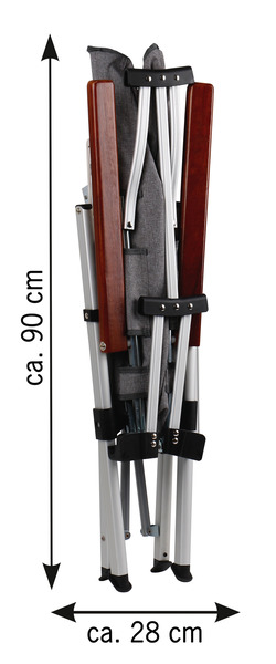 Dank sehr kleinem Packmaß (89 x 22 x 18 cm) der ideale Campingstuhl für kleine Camper. Der grau-melierte Stoff mit Leder-Etikett und braunen Armlehnen aus Holz verleihen dem Faltstuhl aus der HOLIDAY TRAVEL – Serie ein exclusives Design. Die 4-fach verstellbare Rückenlehne sorgt für angenehmen Sitzkomfort.