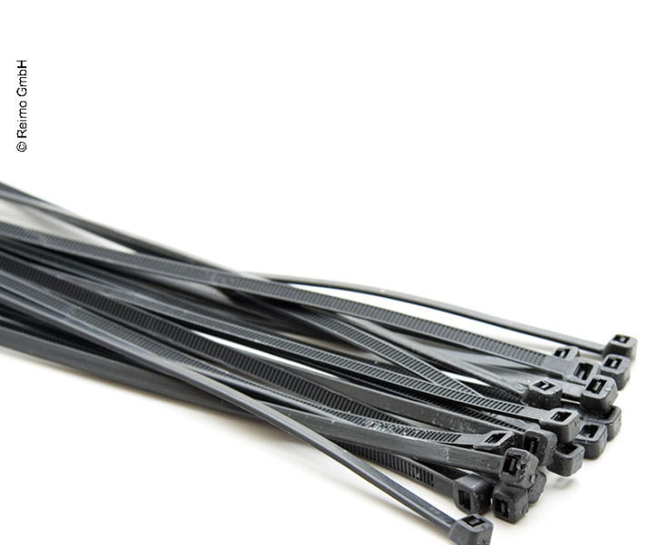 Kabelbinder in der 100er Packung. Zur schnellen Befestigung von Schläuchen oder Kabeln. Kunststoff, farbig sortiert. Größe 200 x 3,5 mm.