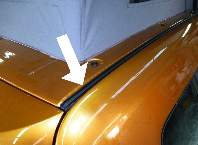 Kederschiene wird auf Fahrzeugdach eingeklebt. Dach muß nur entriegelt sein um den Keder in die Schiene zu ziehen.