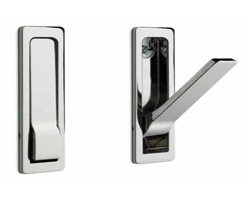 Eleganter Haken zum Einbau in die Wand, Einbautiefe 10mm, komplett versenkbar.