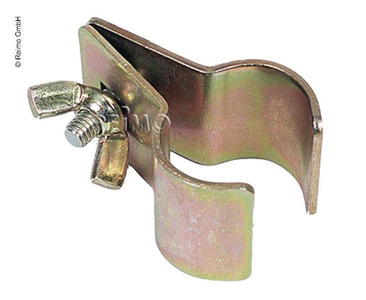 Rohrschelle z.B. zur Zeltbefestigung mit Klemmstange in Regenrinne