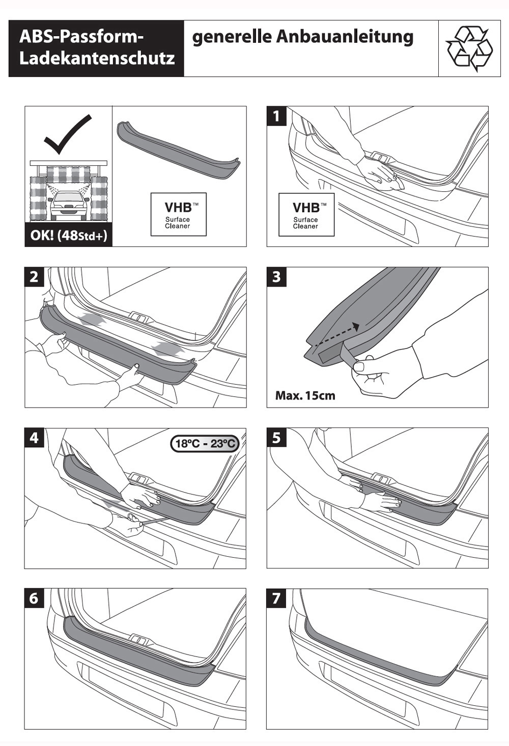 Qualitäts-Ladekantenschutz aus hochwertigem und robustem ABS schwarz lackiert für Fahrzeuge mit Polypropylen-Stoßstangen. Perfekte Passform die das Originaldesign des Fahrzeuges sinnvoll ergänzt, einfache und schnelle Montage durch hochwertiges doppelseitiges Klebeband oder Befestigung mit Originalschrauben an Originalbefestigungspunkten. Schützt die Stoßstange vor unansehnlichen Verkratzungen.