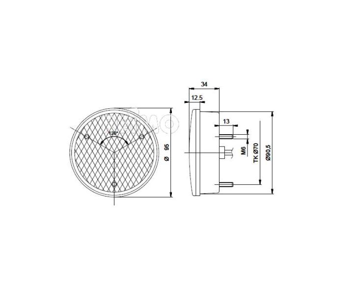 LED-Blinkleuchte Ø 95 mm, Kat. 2a, klar, 12V, 3W. Mit Kabel 500 mm.