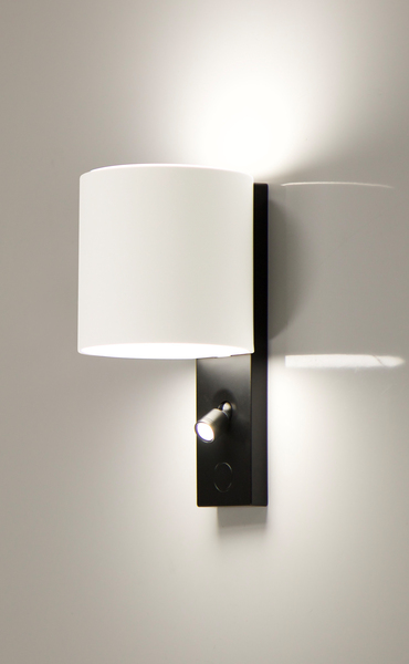 12 V LED-Wohnraumleuchte KIN mit modernem Schirm und Touch-Schalter zur Wandmontage. Die Leuchte sorgt mit einem zeitgleich nach oben und unten strahlenden Licht für ein äußerst gemütliches Ambiente. Zusätzlich ist ein verstellbarer Mini-Spot integriert, der sich perfekt als Leselicht eignet.