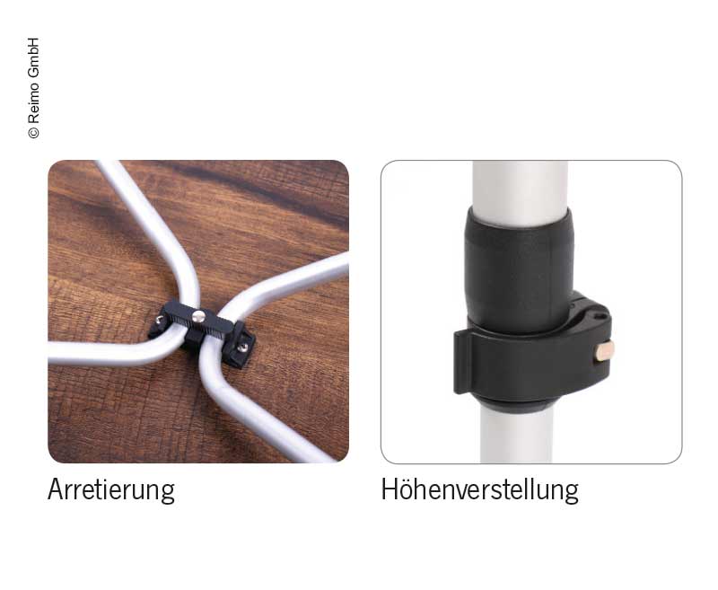 LEVI Family ist ein exklusiver Campingtisch für 4-6 Personen mit einer wetterfesten Tischplatte in edlem Holzdesign. Mit ihm ziehen Sie alle Blicke auf sich, denn er sorgt unterwegs für eine gemütliche Wohnzimmer-Atmosphäre. Endgültig werden Sie die 2 einstellbaren Höhen (59/72cm) und seine Belastbarkeit von bis zu 80 kg überzeugen. Die Tischplatte ist durch ihre PP-Wabe, Glasfasern und Harz wasserfest.