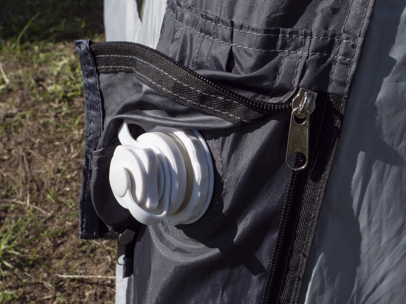✔ 1 Pavillon mit 1 TPU-Luftschlauch, Luftpumpe, 4 Seitenwände: 2x mit Moskitonetz, 1x geschlossen, 1x mit Reißverschluss-Tür, Heringe, Abspannleinen, Packtasche.