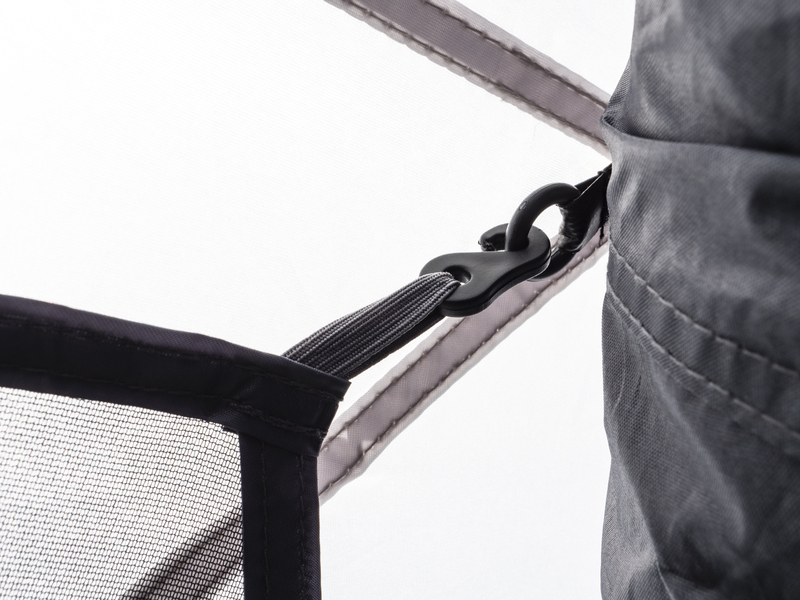 ✔ Seitenwände werden mit Haken und Klett befestigt