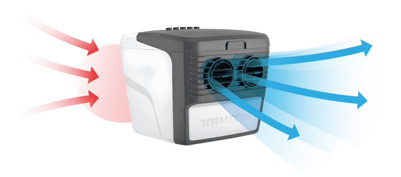 Der Totalcool ist robust und solide aus speziellem, bakterienresistentem Kunststoff mit einem biologisch abbaubaren Filter gefertigt und wurde mit Blick auf die Umwelt entwickelt. Der Totalcool bläst 45% kühlere Luft mit normalem Leitungswasser und kann sowohl an abgelegenen Orten als auch zu Hause oder am Arbeitsplatz eingesetzt werden. Er bringt Ihnen kühle Luft, wann immer Sie sie brauchen, solange Sie eine Tür, ein Fenster oder eine Entlüftungsöffnung öffnen können, um etwas Frischluft in den Totalcool zu leiten.