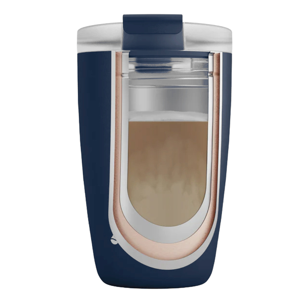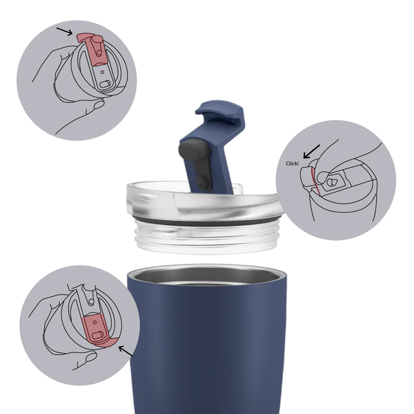 Der Edelstahl-Cup ist dank des Fliplids zu 100% dicht. Zudem wird durch eine doppelwandige Vakuumschicht das Austreten von Wärme und Kälte verhindert – dein Getränk bleibt also bis zu 3 h heiß oder gekühlt. Das macht den Cup perfekt für unterwegs.