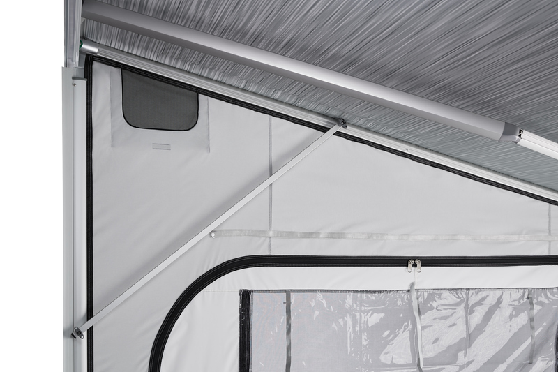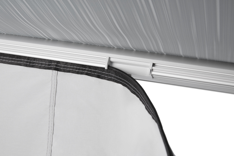 Perfekte Dachabdichtung dank Klemmprofilen für das Anbringen der Seitenwände und deren Verbindung mit dem Markisenstoff
