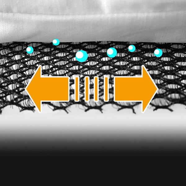 Material: DRYWEAVE – elastisches, dreidimensionales Mesh-Gewebe mit über 95% Luftanteil, hergestellt aus PP (450g/m²)
