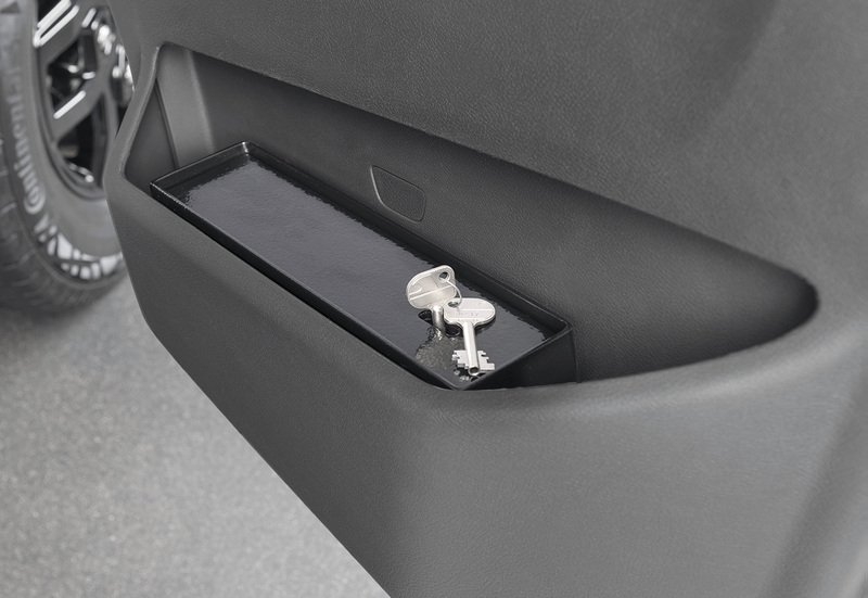 Eigens entwickelt für die Beifahrertür des Ford Transit ab Baujahr 06/2019. Der Safe wird mit einer zu verschaubenden Montageplatte im Türfach montiert und ist von Außen nicht zu erkennen. Der Deckel ist vor dem Aufhebeln geschützt, da keine Ansatzpunkte vorhanden sind. Der Safe ist ausgestattet mit einem 3-Bolzenschloss mit 7 Zuhaltungen.