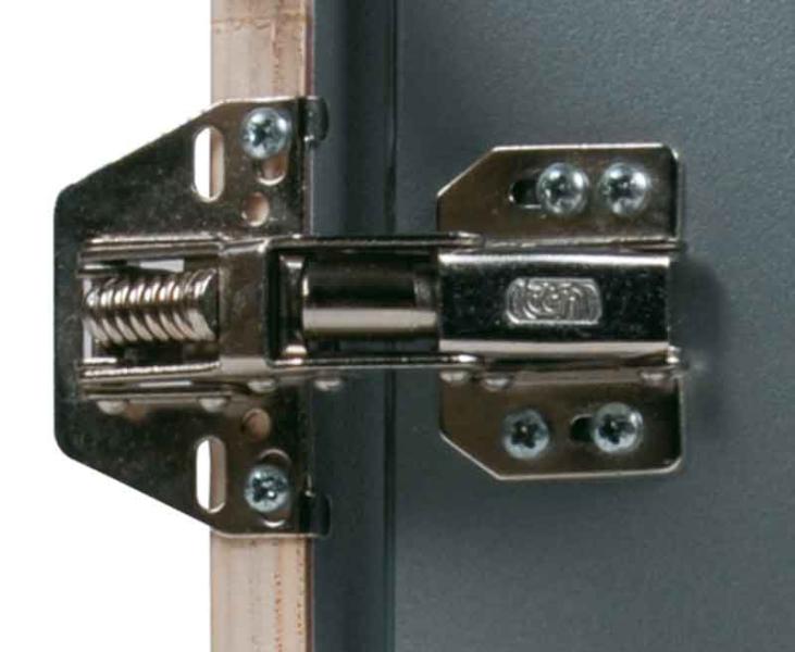 Federscharnier in stabiler Metallausführung. Verfügt über einen 92° Öffnungswinkel. Durch Federn werden die Klappen geöffnet und geschlossen.