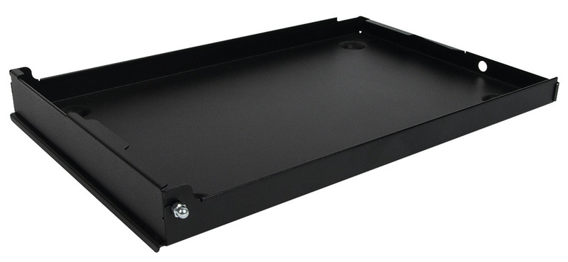 Mit der Montageplatte kann die LPS z.B. in einem Fahrzeug befestigt werden. Dafür wird die Montageplatte mit Schrauben direkt an der Karosse verschraubt. Dann wird die LPS in die Montageplatte gestellt und am vorderen Teil mittels Halteblech und M6-Muttern seitlich fixiert. Material: Stahlblech