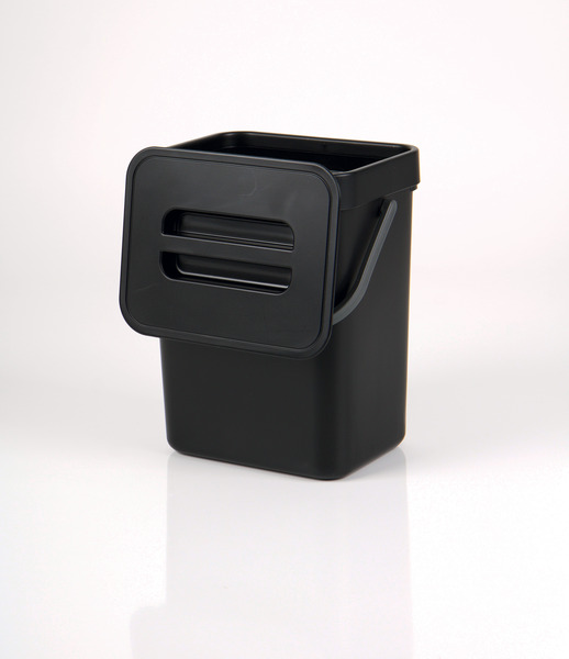 Mit Klebeetikett, abnehmbarem Deckel und abklappbarem Griff