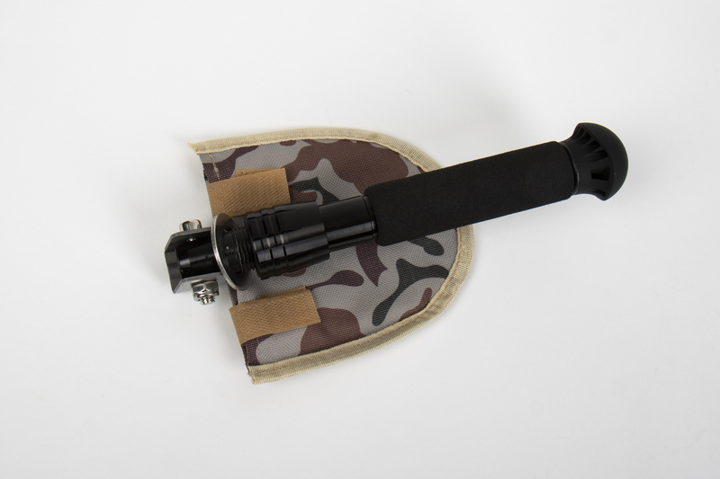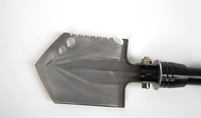Die klappbare Mini-Schaufel ist multifunktional verwendbar als Schaufel, Schraubenschlüssel, Flaschenöffner, Messer, Säge. Sie wird in einer praktischen Tasche geliefert.