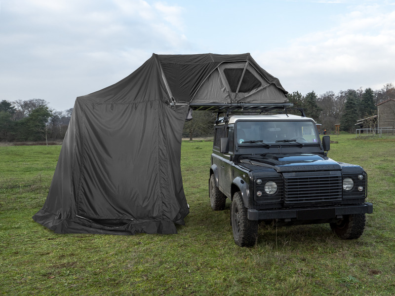 Anbindung an Dachzelt VICTORIA 2.0 (900647) per Reißverschluß / Leiter im Inneren des Anbaus schützt vor Regen, Wind & Kälte.