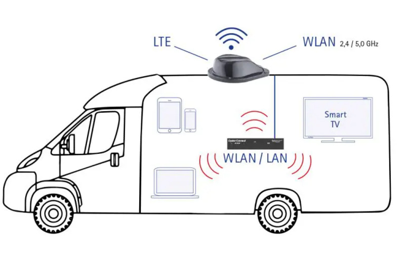Mit dem Oyster® Connect Antennensystem haben Sie Ihren Internetanschluss immer dabei. Sie können im Wohnmobil, Campingbus oder Caravan ganz entspannt surfen – und zudem sämtliche Vorzüge eines „mobilen Heimnetzwerkes“ nutzen. Der mobile Hotspot sorgt für ein stabiles Signal – sogar während der Fahrt. Die Verbindung bleibt standortunabhängig erhalten, ganz gleich, aus welchem Netz das externe Signal kommt – die registrierten Endgeräte verbinden sich ganz automatisch mit dem eigenen Hotspot. In der Antenneneinheit ist ein LTE- und ein Dual Band WLAN-Modul verbaut. Das sorgt für eine größere Reichweite. Im WLAN-Bereich sorgt das MIMOSystem (Multiple Input Multiple Output) mit 4 Antennen für einen stabilen Datendurchsatz. Die LTE-Funktion basiert auf einer ALL-Band Antenne in Diversity-Technologie. Sie unterstützt alle LTE Bänder von 698 MHz bis 3800 MHz und bietet ohne Ausrichtung der Antenne eine maximale Sende- und Empfangsleistung. Im Fahrzeug wird ein WLAN-Empfänger verbaut mit 2,4- und 5-GHzBandbreite. Beide Bänder sind parallel in Betrieb – so können Sie zeitgleich mehrere mobile Endgeräte auch auf unterschiedlichen Bändern bei höchstmöglichem Datentransfer verbinden. Über einen integrierten LAN-Anschluss kann auch ein privates kabelgebundenes LAN-Netzwerk aufgebaut werden. Vorteilhaft ist die Verwendung einer Muli-Sim-Karte, die im Kartenleser in der Outdoor Unit Platz findet.