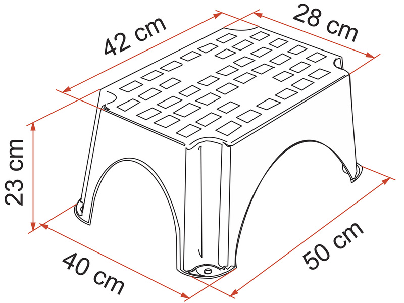 Vervollständigen Sie Ihr Fahrzeug mit unseren Trittstufen, mit denen Sie mühelos in Ihr Fahrzeug steigen können. Step ist eine Trittstufe für Wohnwagen und Reisemobile aus Polyäthylen-HD-Kunststoff, für hohe Stabilität. Rutschfester Auftritt.