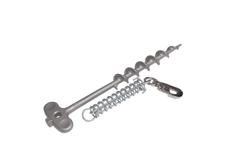 Erdbodenanker mit Stoßdämpfer zum Anleinen von Hunden, Katzen etc.