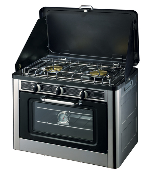 Der portable Kocher mit Ofen von Camp4, lässt keine Wünsche offen. Mit einer Temperaturanzeige für Innentemperatur des Backofens und Backofenuhr für ein exaktes Garen.
