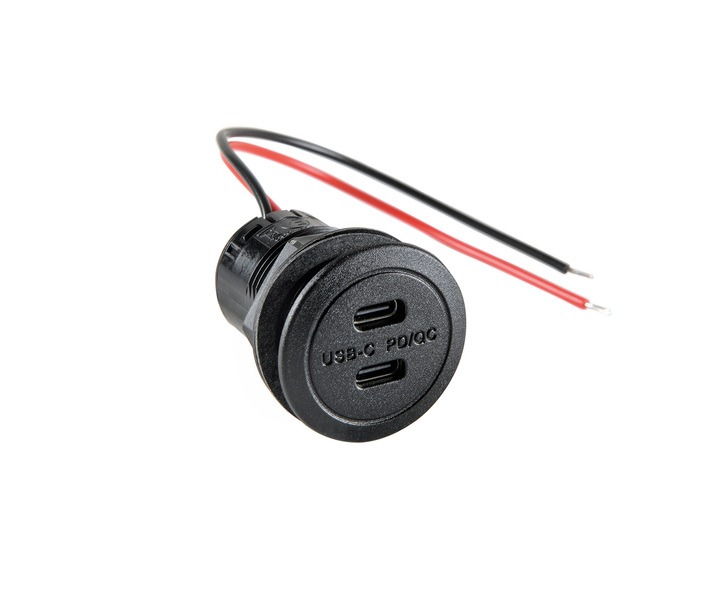 Mit integriertem Spannungswandler. Unterstützen die Schnellladeverfahren Power Delivery (USB-C) und Quick Charge (USB-C+A). Einbaubohrung: Ø 28 mm, Kabellänge: 15 cm. Ohne LED-Beleuchtung.