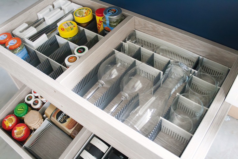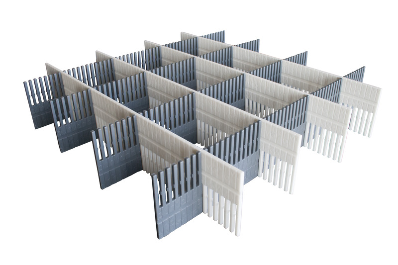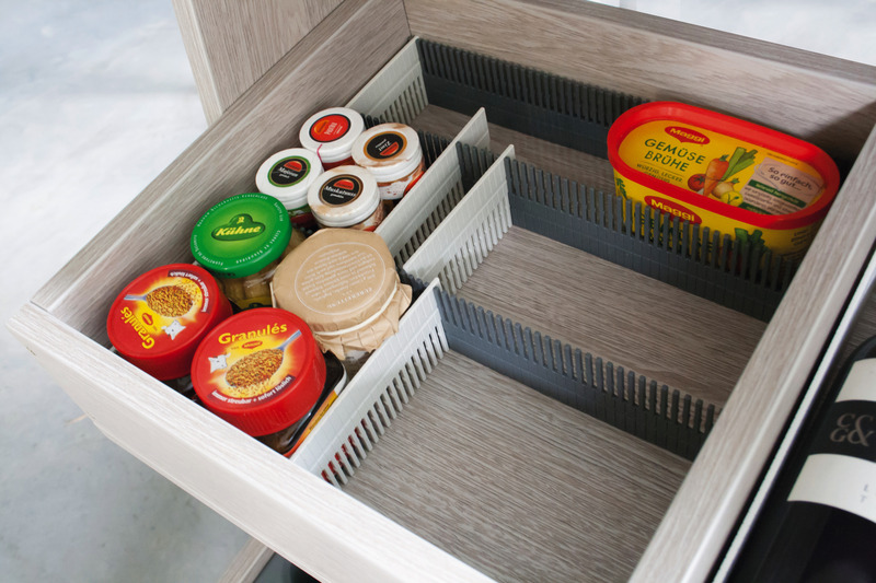 Die 8 Leisten (4x Lichtgrau / 4x Anthrazit) bieten einen variablen Facheinsatz und ermöglichen eine enge Rasterung mit sehr flexibler Verstellbarkeit. Die Leisten können auch gekürzt werden. Für Gläser, Tassen, Flaschen, Dosen, wiederverwendbare Behälter, Haushaltsutensilien, Hygieneartikel, Lebensmittelbehälter, Büromaterial, kleine Werkzeuge, Bastelmaterial, Gewürzutensilien, etc.