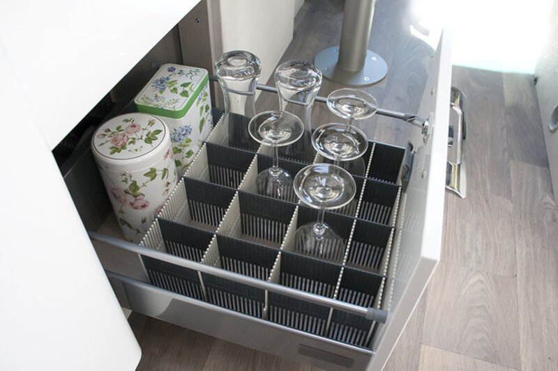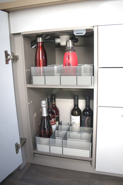 Die 8 Leisten (4x lichtgrau, 4x anthrazit) bieten einen variablen Facheinsatz und ermöglichen eine enge Rasterung mit sehr flexibler Verstellbarkeit. Die Leisten können auch gekürzt werden. Durch die neue Höhe der Stauleisten von 10 cm lassen sich nun auch hohe Gläser, Flaschen etc. sicher transportieren. Material: ABS Spritzguß