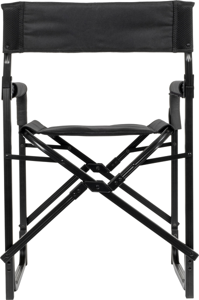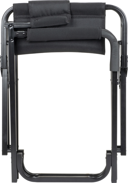 Regiestuhl mit klassischem Gestell aus einem pulverbeschichteten Aluminium-Profilrahmen. Platzsparend durch abklappbare Rückenlehne. Sitzfläche aus gepolstertem, atmungsaktivem 3Durafeel-Gewebe. Gepolsterte und bezogene Armlehnen. Maße: 45 x 35 x 48/87,2 cm, Packmaß: 73,5 x 51 x 13,5 cm.