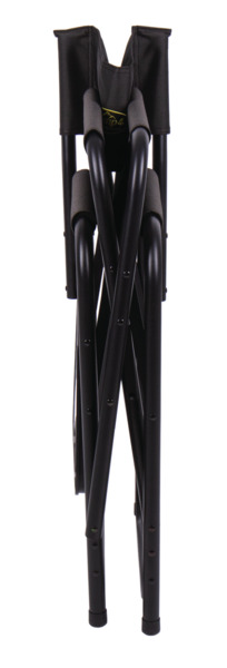 Der kompakte Regiestuhl Maxi DeLuxe Black mit Seitentisch ist ein bewährter Begleiter. Er hat ein schwarzes Gestell mit gepolsterten Armlehnen. Der Seitentisch hat eine praktische Vertiefung für Becher, Tasse, Flasche etc. Der Regiestuhl ist platzsparend verstaubar und hat einen Sicherheits-Faltmechanismus.