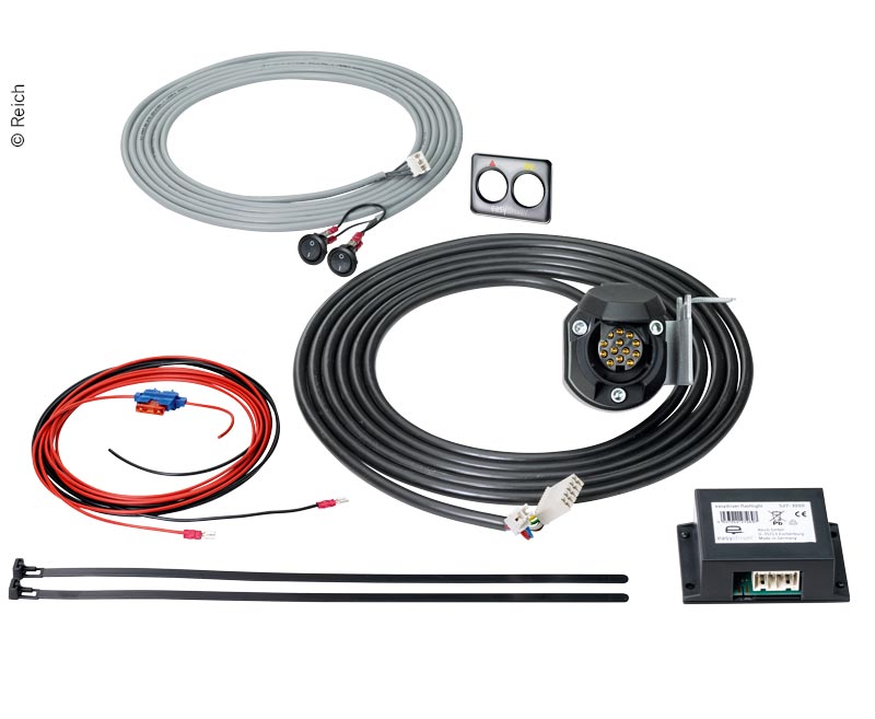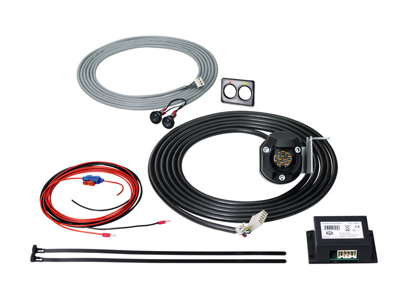 ✔ easydriver flashlight, Elektronikbox mit 2 Schaltern, Kabelbaum, 13-polige Steckdose, Befestigungsmaterial und Bedienungsanleitung