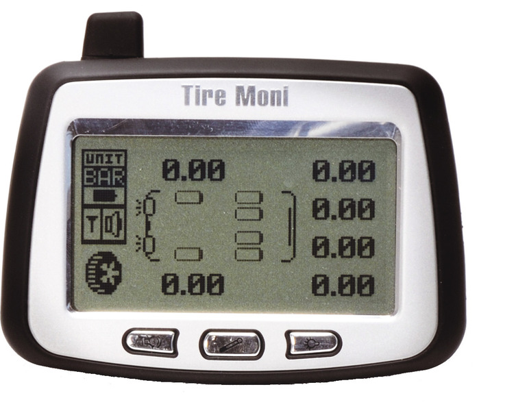Kontrolliert permanent den Reifendruck. Schützt wirkungsvoll vor Unfällen. Spart teuren Kraftstoff. Erhöht die Reifen-Laufleistung. Zu niedriger Luftdruck ist die Nummer 1, die zu Ausfällen, Pannen und schweren Unfällen führt. Mit TireMoni Überwachungssystem kontrollieren Sie permanent den Zustand Ihrer Reifen. Unfälle werden so wirkungsvoll vermieden. Zusätzlich sparen Sie mit dem optimalen Reifendruck kostbaren Sprit. 6 Sensoren, Messbereich 0 – 11 Bar. Genauigkeit 0,14 Bar. Lieferumfang: 1x TireMoni Anzeigegerät inkl. Batterien AAA, 6 Checkair Reifendruck Sensoren inkl. Batterien CR1632, 12 Volt Anschlusskabel, Befestigungsrahmen, Bedienungsanleitung.
