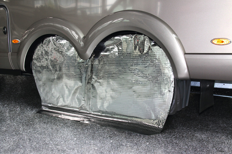 Die Hülle verfügt über eine reflektierende Frontfläche damit die den Reifen schädigenden UV-Strahlen abgehalten werden, die Hitzeeinwirkung geringer. Die Hülle liegt auf der Lauffläche auf und kann nicht herunterrutschen. Der eingearbeitete Keder gibt Form und Halt. Eingearbeitete Ösen für Erdnägel dienen der sicheren Befestigung.