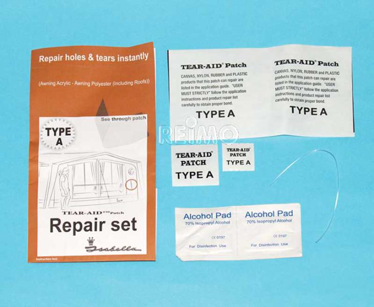 Das selbstklebende Reparaturset für jede Notlage. Zum Abdichten von Löchern und Rissen in Zeltstoff und Folie. Ausführung Typ A: Acryl.