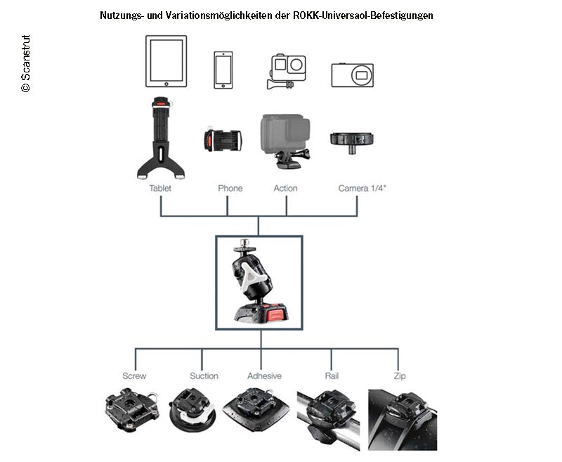 Starke Universal-Befestigung aus dem Marine Bereich für Smartphone, Tablet oder Action-Kamera, Haltesystem für Mast und dickere Rundrohre