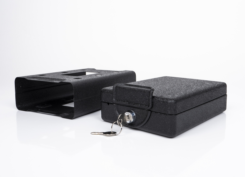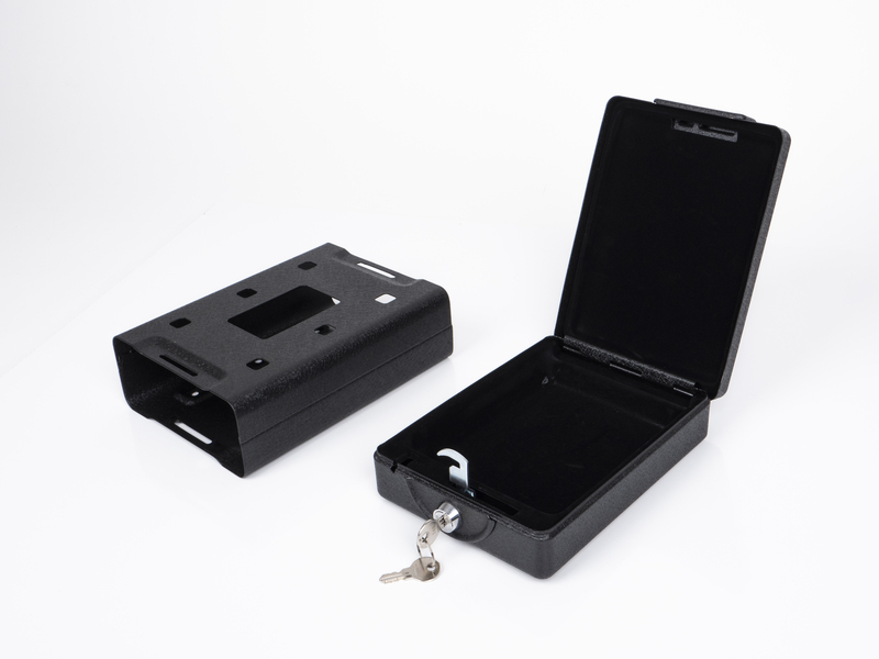 Stabil und handlich. Durch die mitgelieferte, festverschraubbare Halterung ist Safety jederzeit schnell einzuschieben bzw. zu entnehmen. In den abschließbaren Korpus passen Reisepässe, CD’s und vieles mehr. Kassette wird mittels Schlosszunge mit Halter fest verbunden.