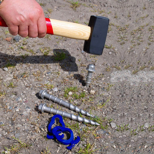 Konzipiert für harte Böden. Zum Einschlagen mit dem Hammer. Der runde Kopf ermöglicht es beim Einschlagen die Richtung der Spitze zu ändern. Durch den höhenverstellbaren Haken braucht man nicht immer bis zum Ende eintreiben. Links herum gedreht kommt der Hering maschinell oder per Handschlüssel, schnell wieder heraus.