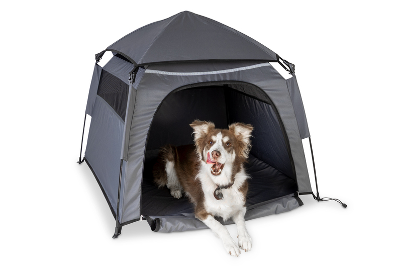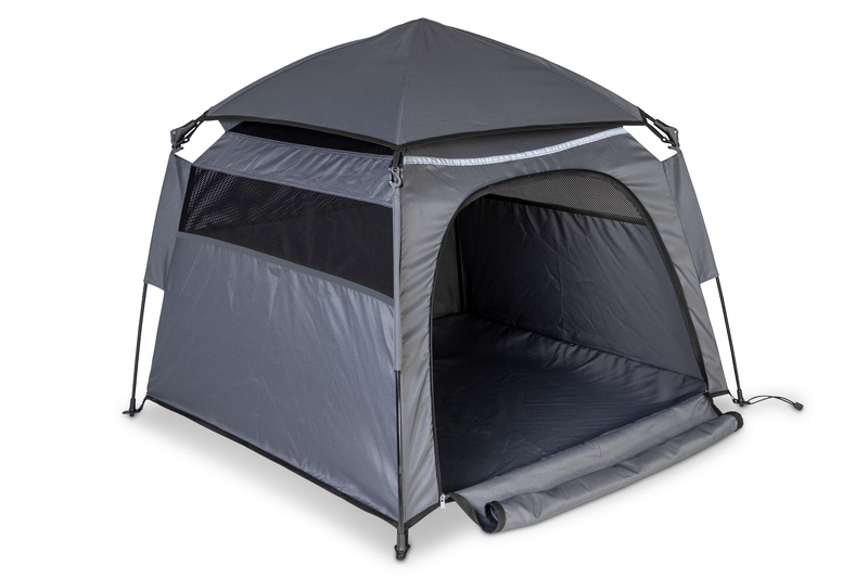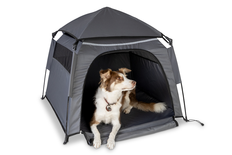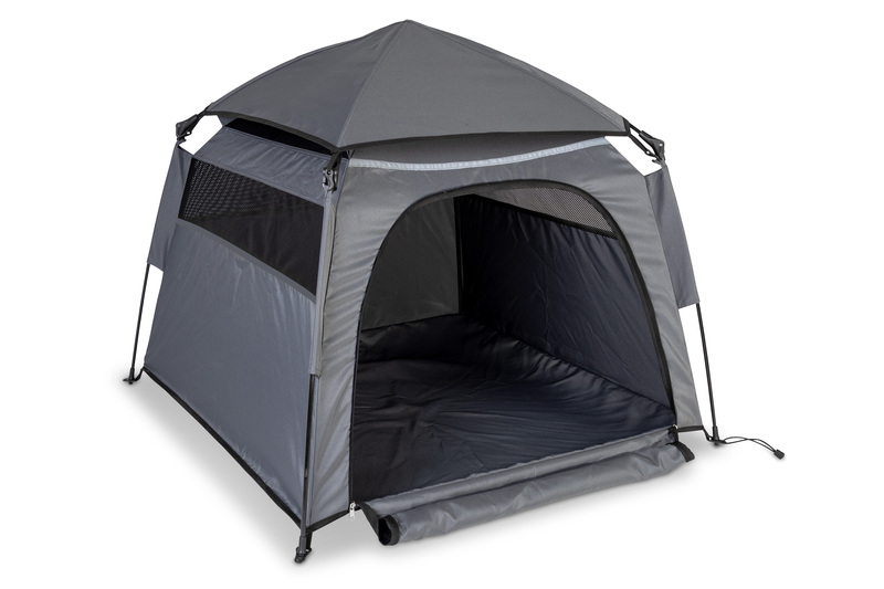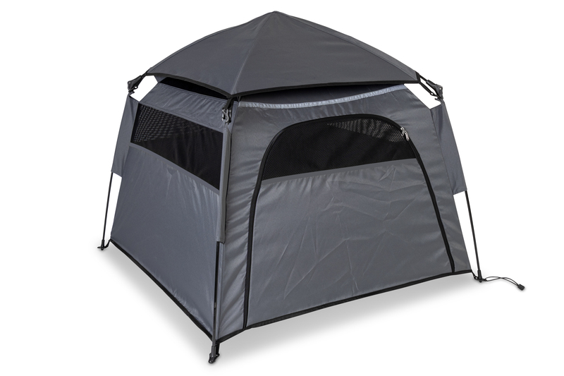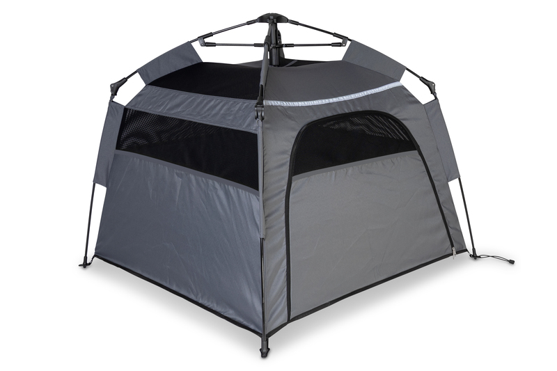 Das freistehende Hunde-Zelt bietet Ihrem Vierbeiner einen geschützten Ruheplatz mit Schnellaufbau-System für einfachen Aufbau. Moskitonetze an allen Seiten und im Dach sorgen für optimale Belüftung und Schutz vor Insekten, während die zusätzliche Dachplane Schatten und Regenschutz bietet. Eine Tür mit Reißverschluss ermöglicht bequemen Zugang.