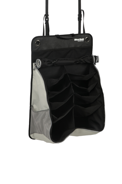 10 Fächer für Schuhe, 3 kleine Mesh-Fächer oben, 2 große Mesh-Taschen seitlich