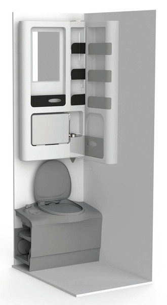 Schwenkbarer Bad-Hängeschrank mit Klappwaschbecken